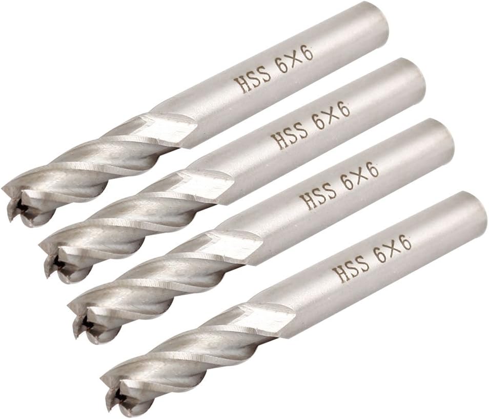 4 Pcs 6mm HSS Straight Shank 4 Flute End Mill Milling Cutter Tool