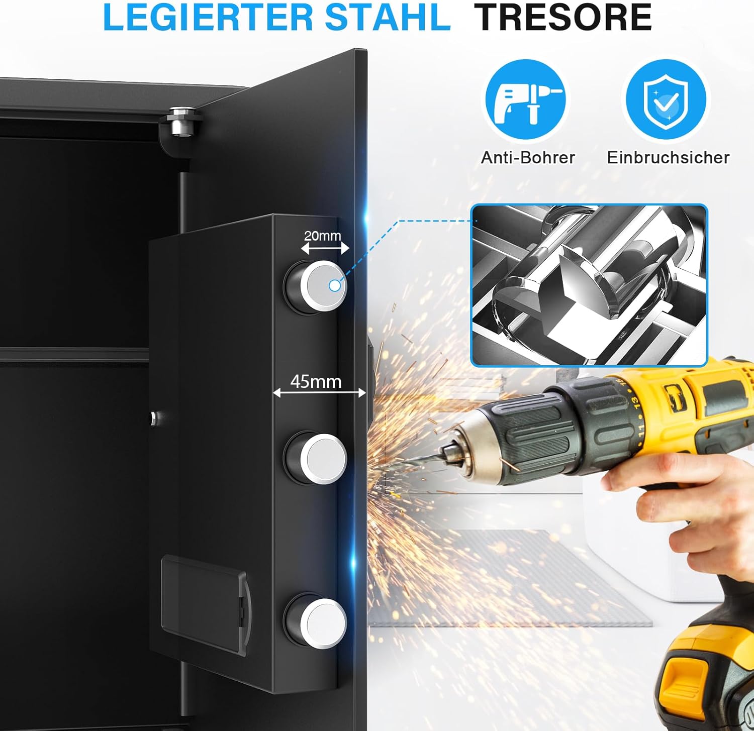 Safes made entirely of steel: The safe is made of sturdy cold-rolled steel, which has good anti-theft and rust protection and high temperature resistance. The hidden safe is equipped with 3 x 20 mm fixed bolts and a 50 mm thick door, and the three-bolt lock can effectively prevent unauthorised access. You can use a safe to protect firearms or drugs from children and thieves.