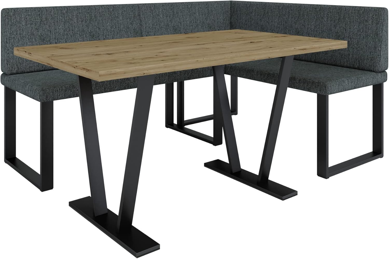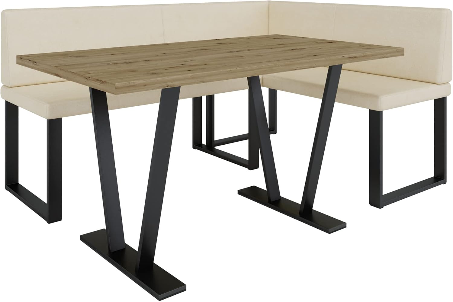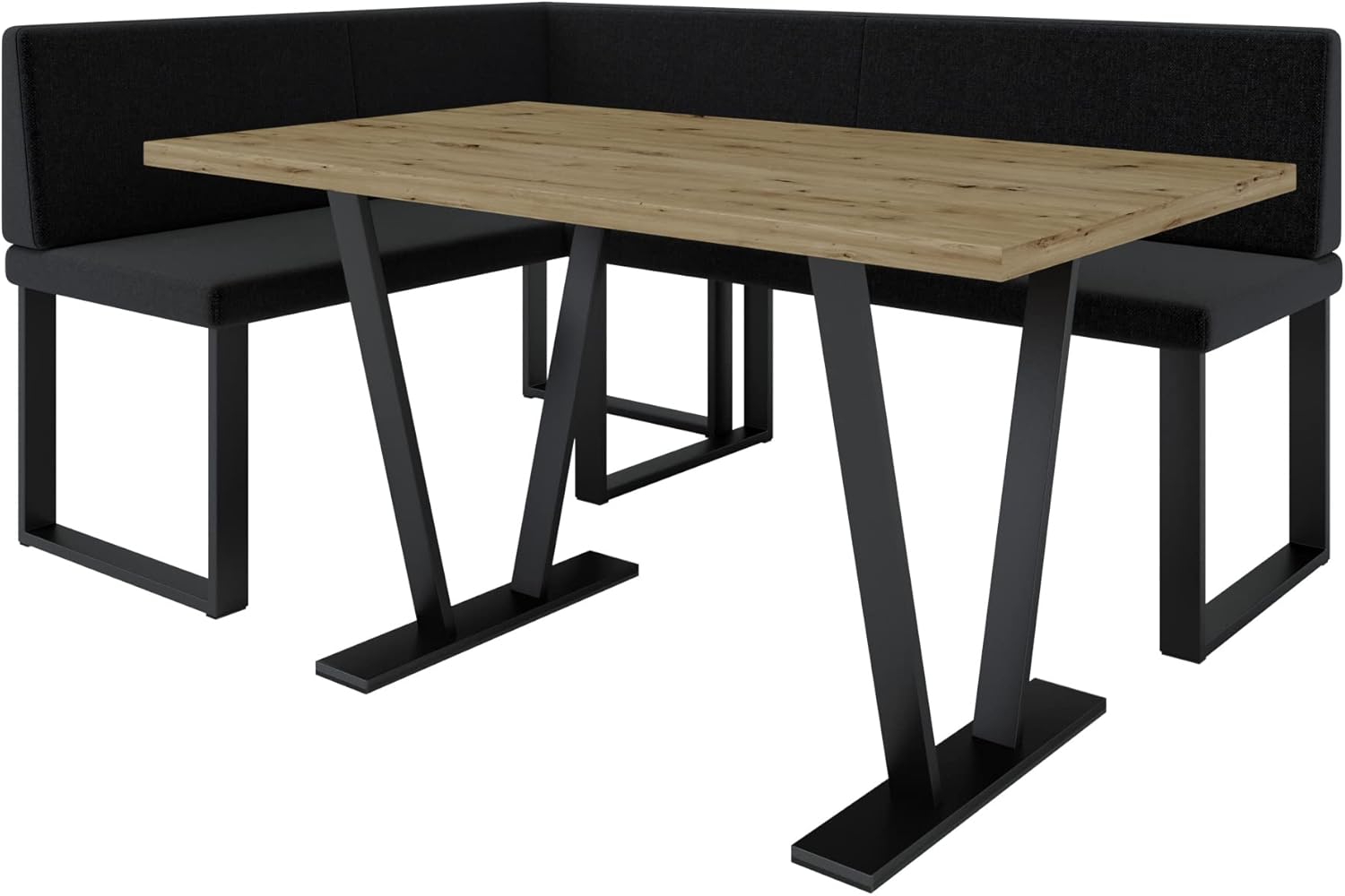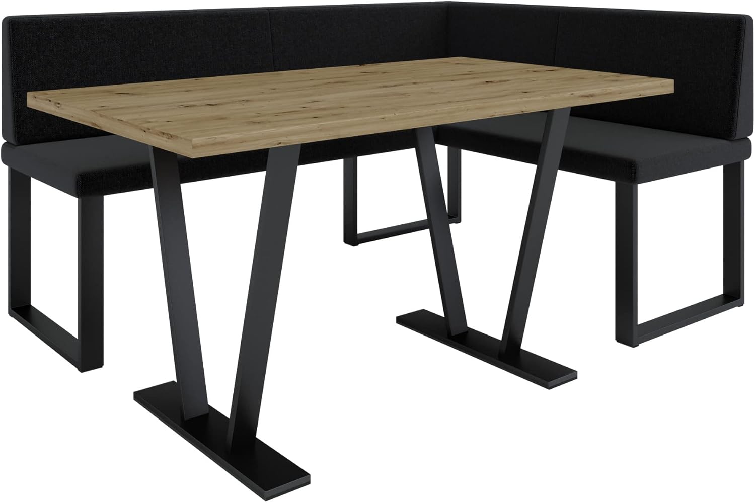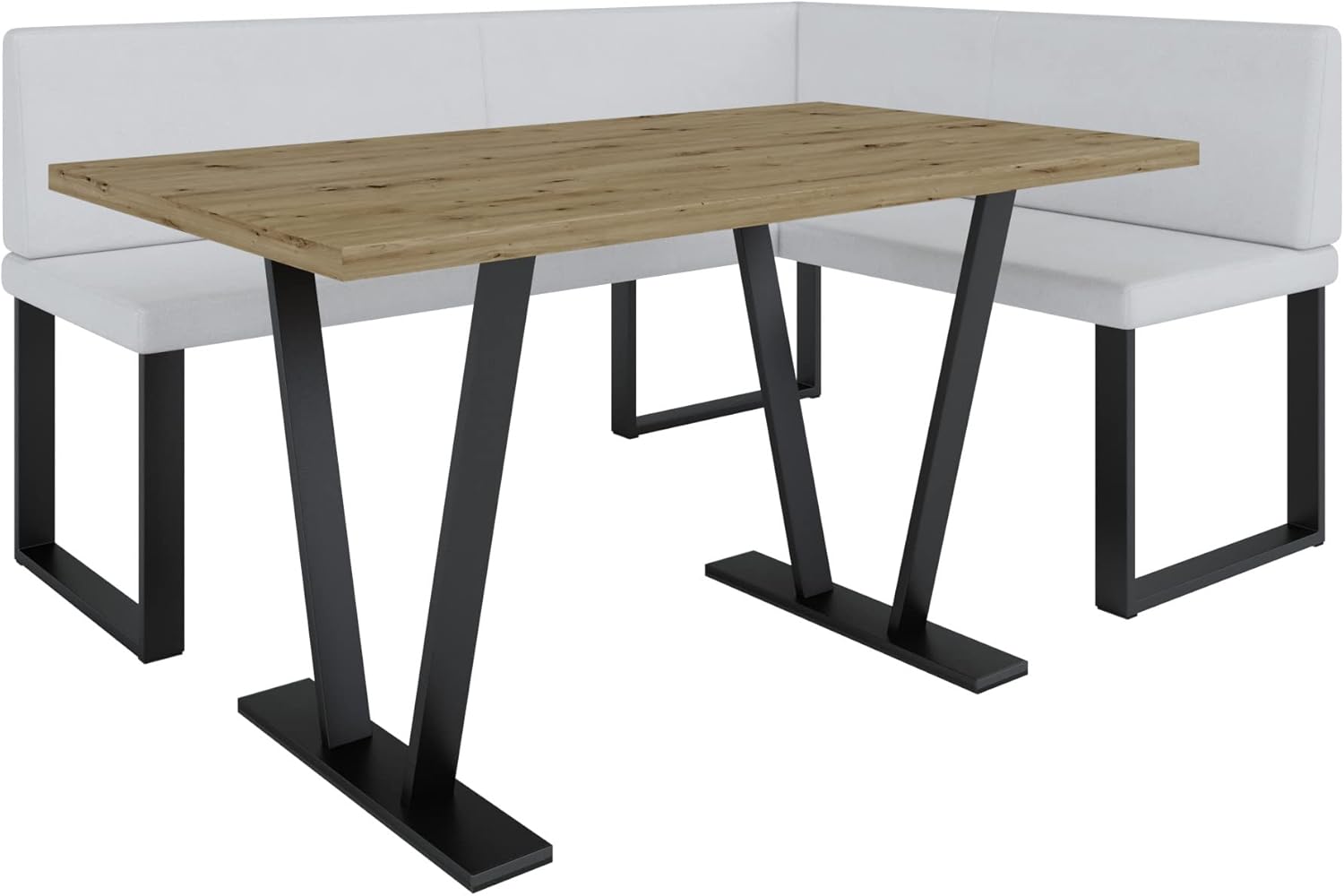Akiko Metal Corner Bench with Table for Your Dining Room, Kitchen, Modern, Seating Area, Dining Nook, for Kitchen, Office, Reception, Solid and Strong Workmanship, (INARI 100, 196 x 142 Left)