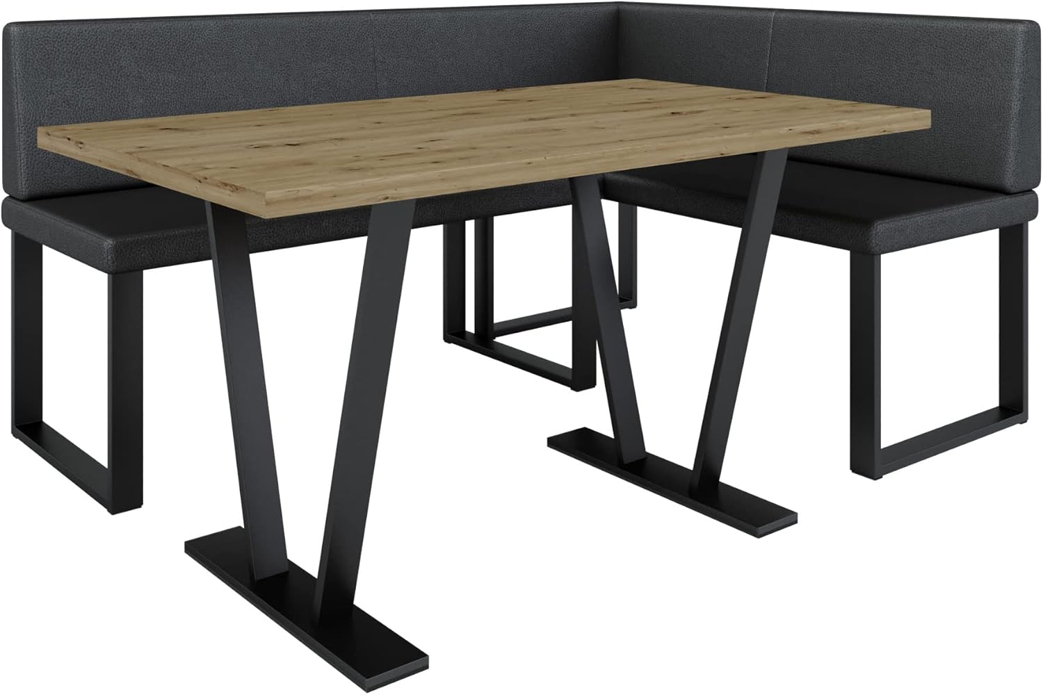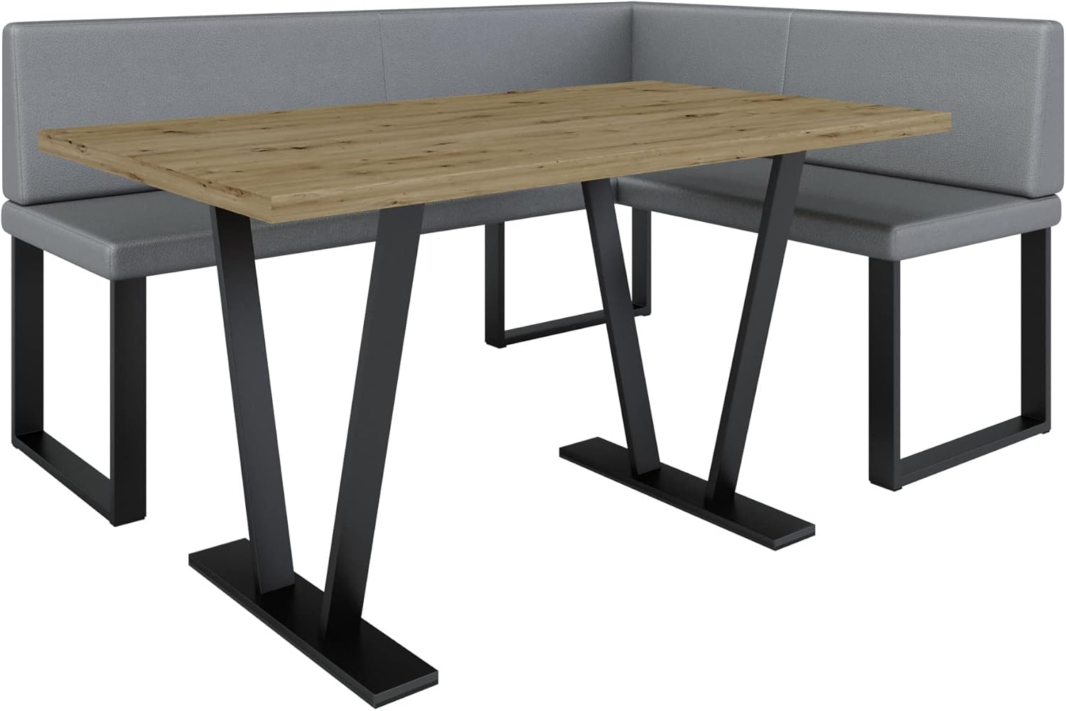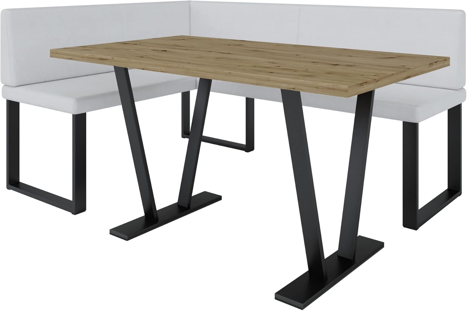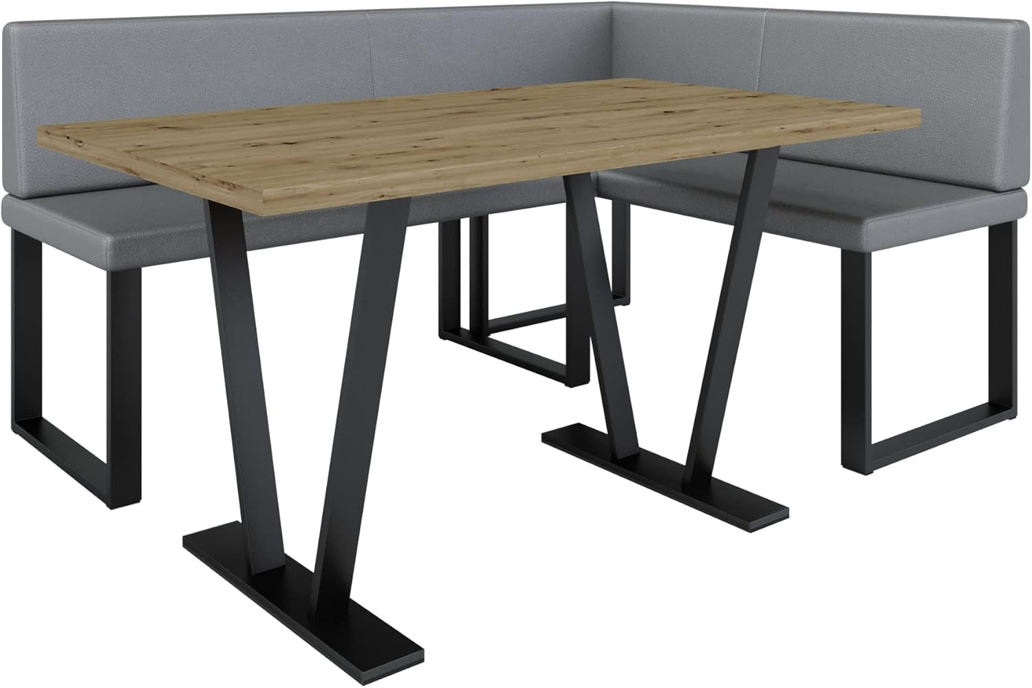 Akiko Metal Corner Bench with Table for Your Dining Room, Kitchen, Modern, Seating Area, Dining Nook, for Kitchen, Office, Reception, Solid and Strong Workmanship, (INARI 100, 196 x 142 Left)