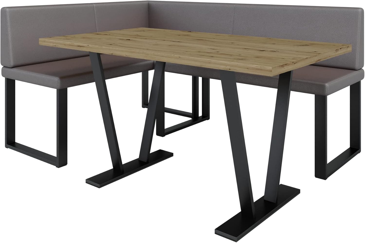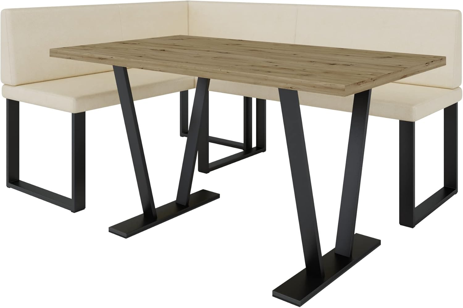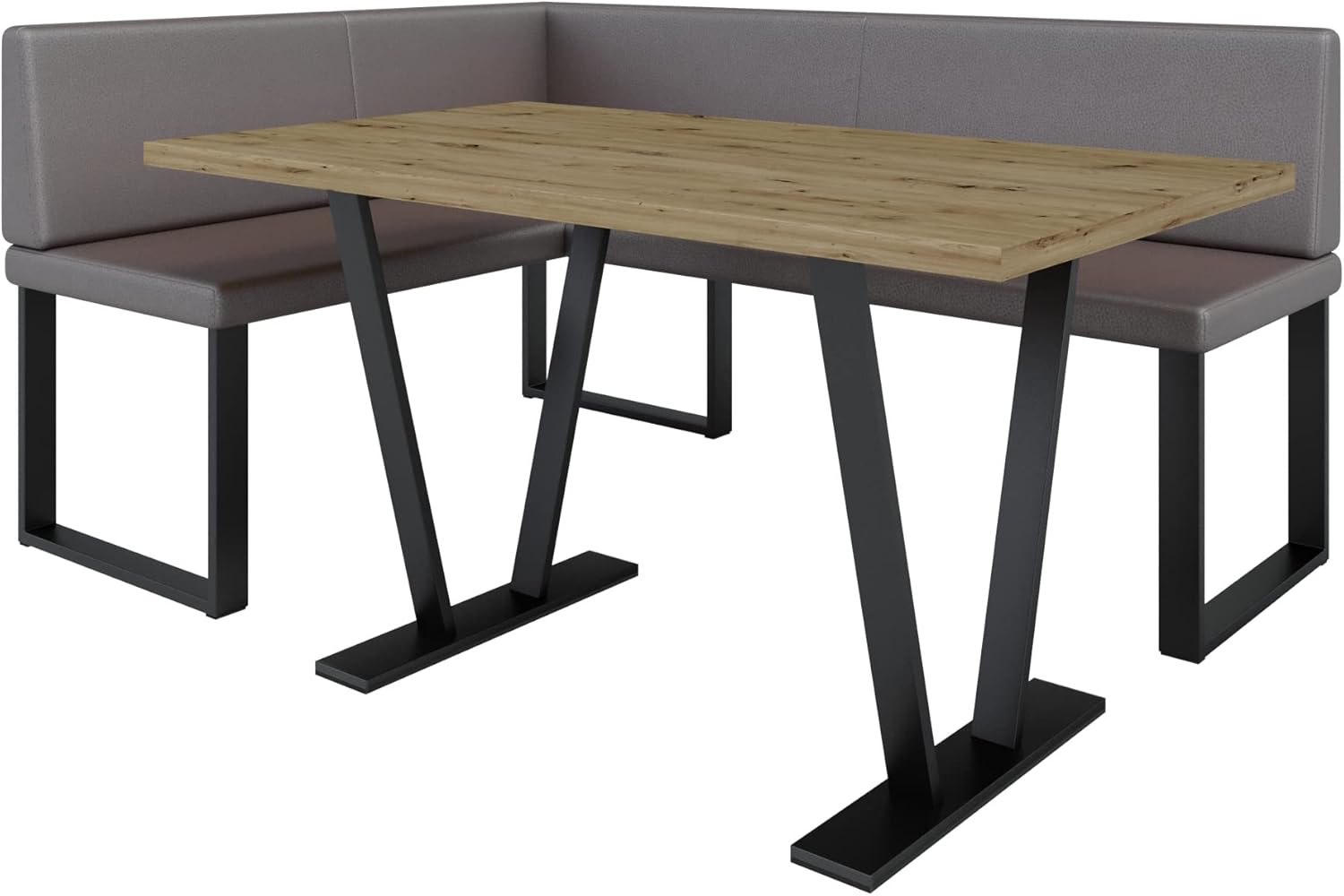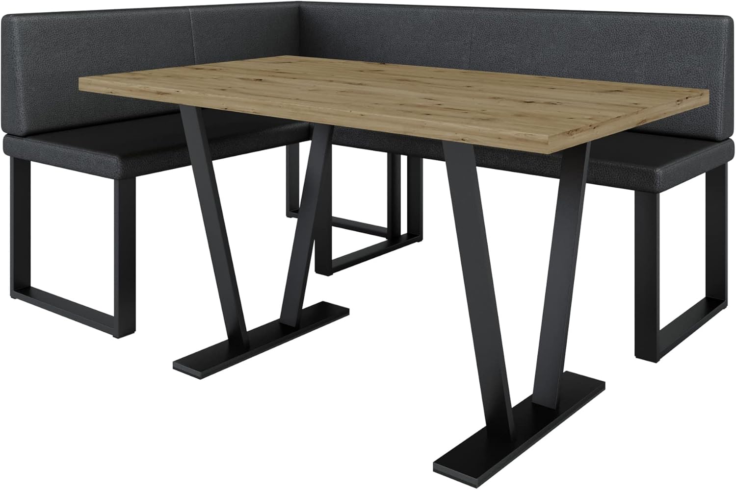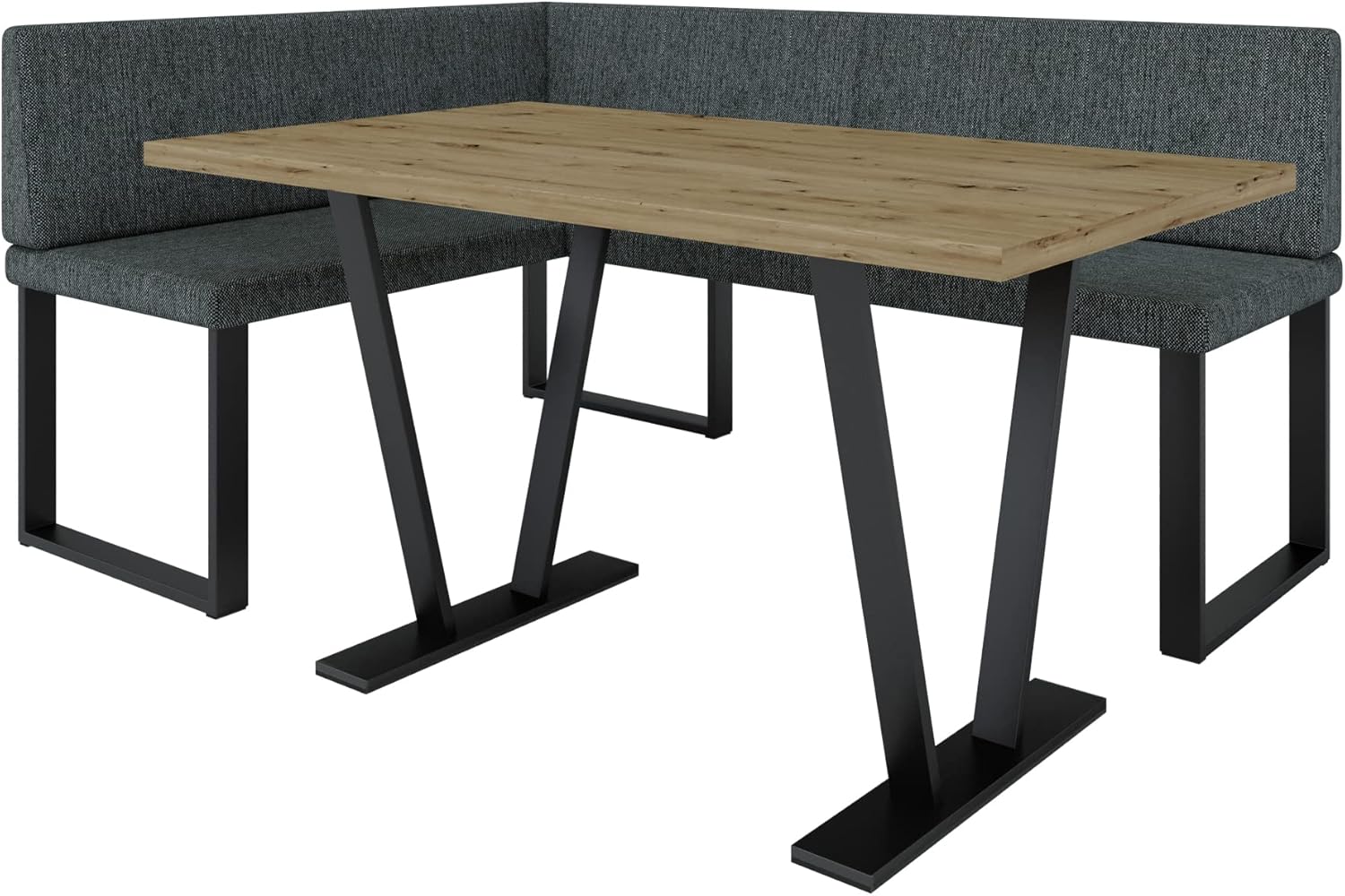 Akiko Metal Corner Bench with Table for Your Dining Room, Kitchen, Modern, Seating Area, Dining Nook, for Kitchen, Office, Reception, Solid and Strong Workmanship, (INARI 100, 196 x 142 Left)