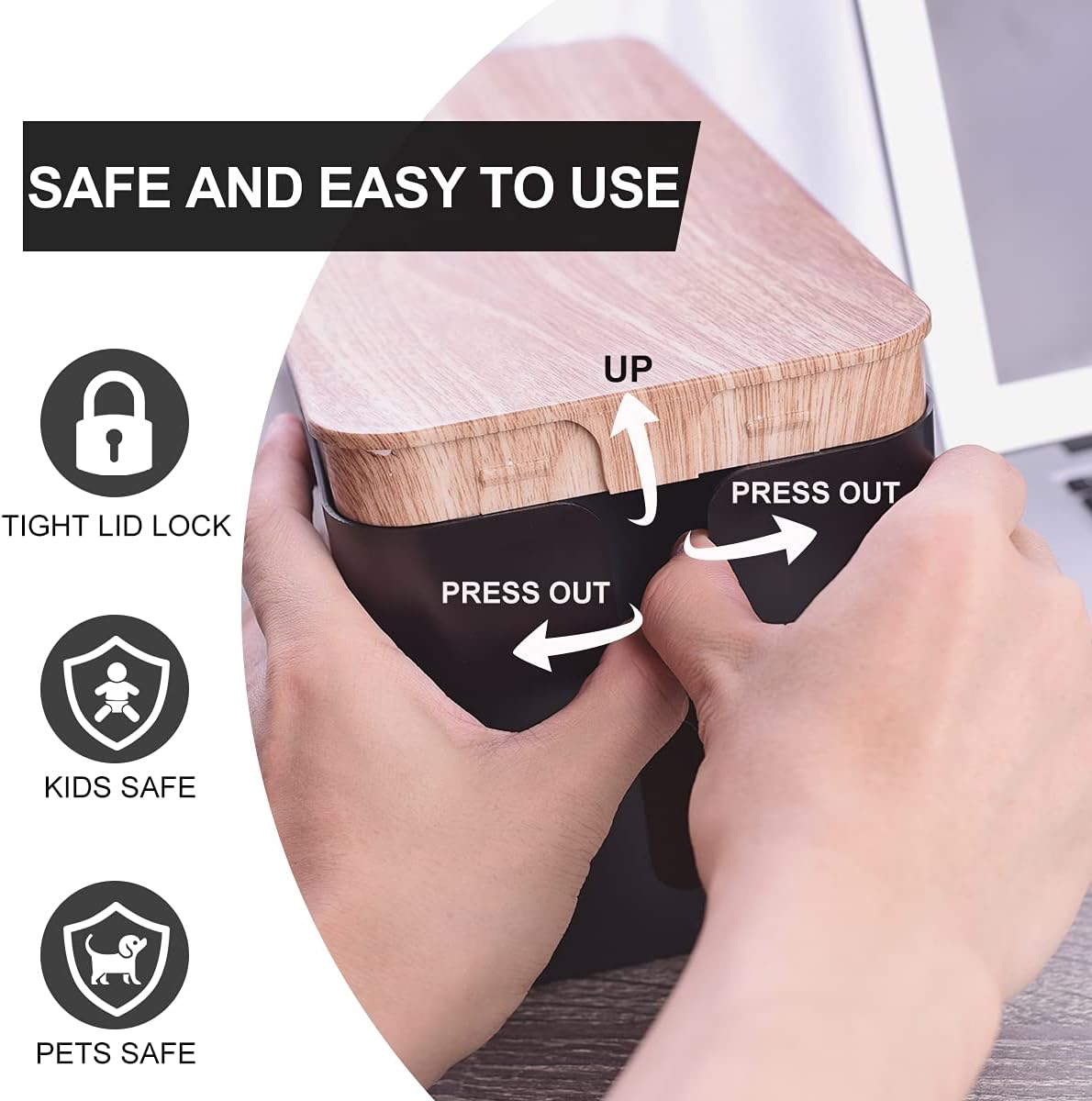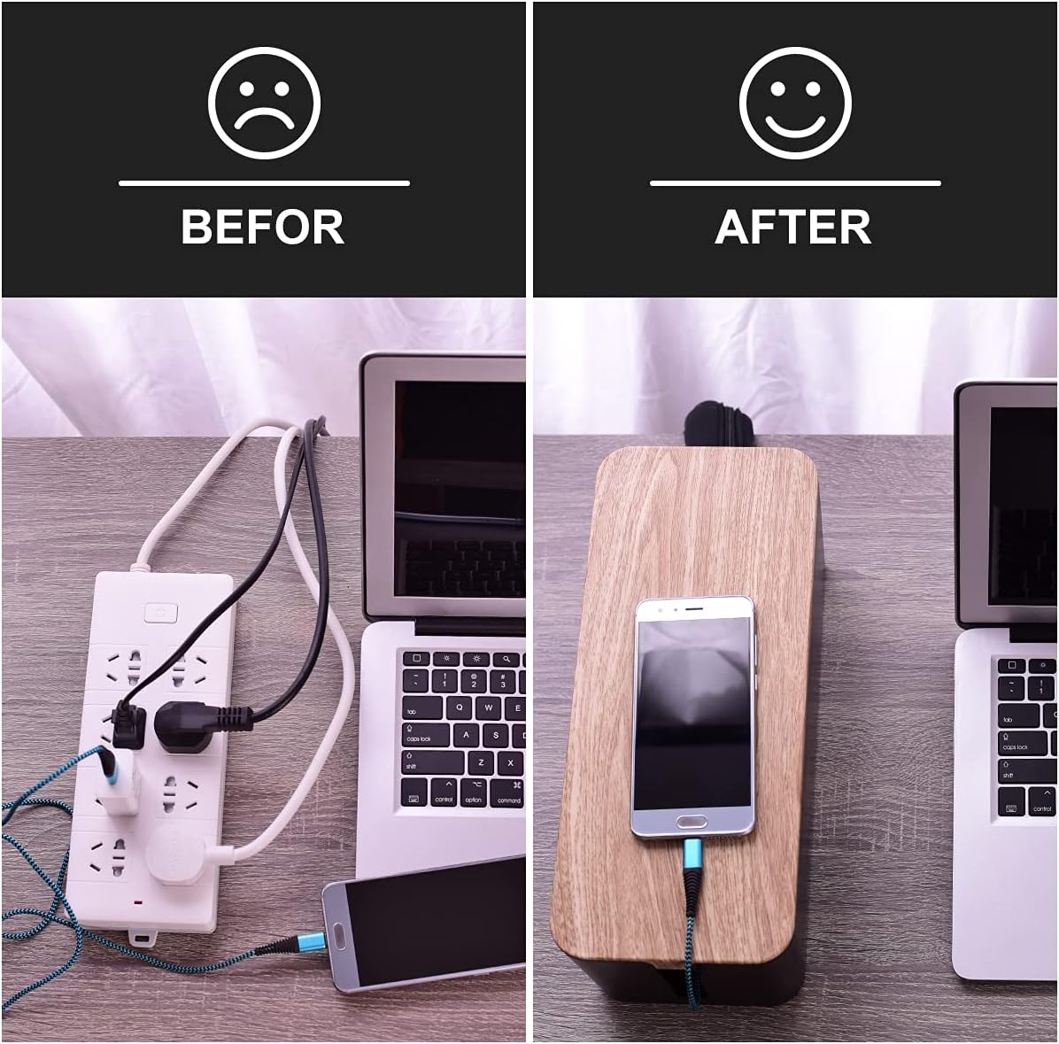 Cable Management Box with 18 Piece Cable Management Kit - Large & Medium and Small Wood Grain Cable Organizer Box for Hiding Wires and Power Strips, TV Cable Organizer Box,