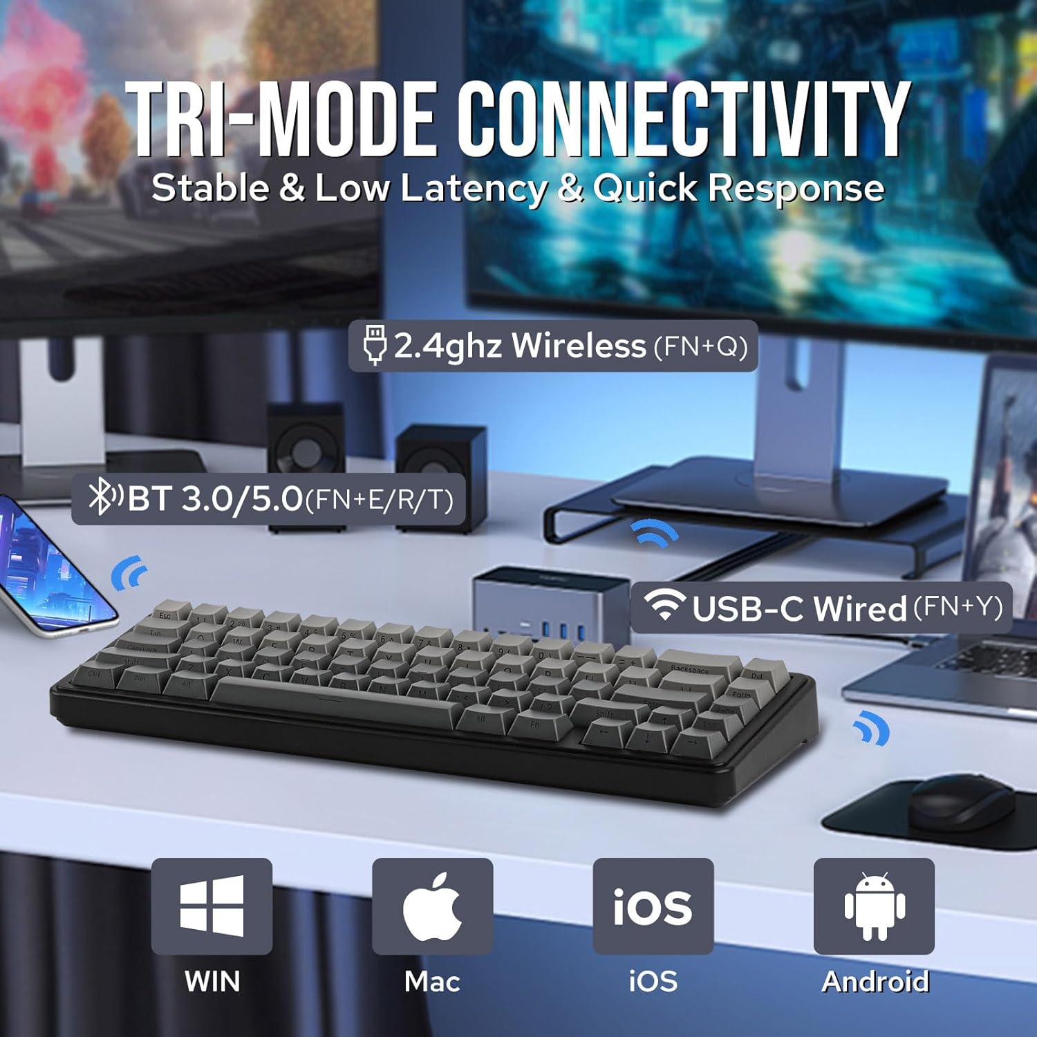Durable connection: Adaptable to any scenario, with Bluetooth, 2.4G wireless and USB-C mode. Large 4000mAh battery that ensures F65 is always ready when you start playing.