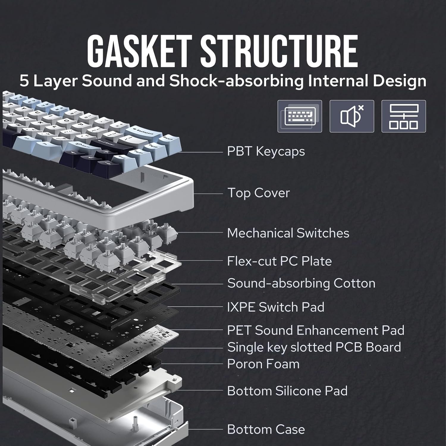 Acoustic masterpiece: Rich, creamy and noise-free. Packed with shock and noise absorbing Poron, IXPE and silicone as well as the PET pad for sound enhancement.