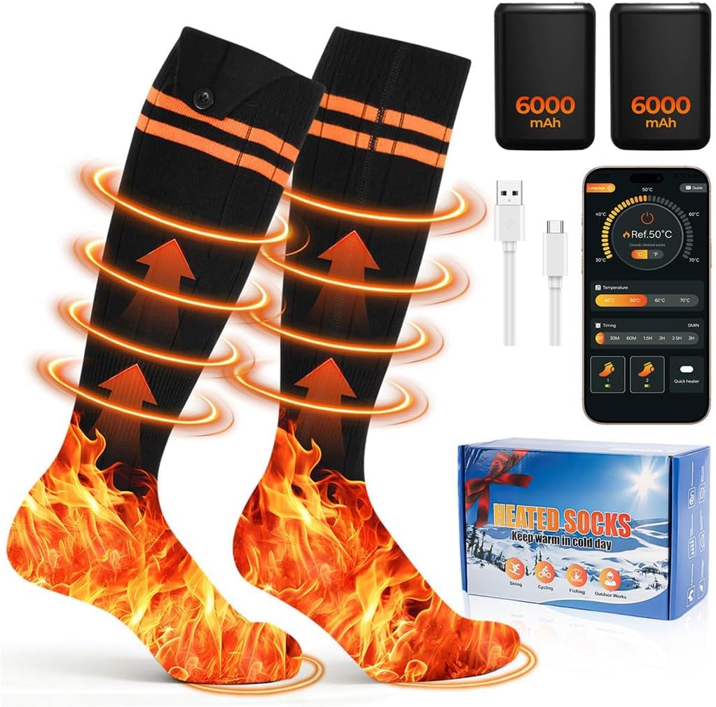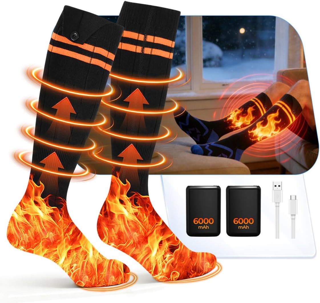 3-second heating and 360° all-round heating range: compared to conventional heated socks, our team has further developed the heated socks, the heating socks heat up in just 3 seconds. Equipped with better heat-conducting materials and thicker socks, 360° wrap-around heating area, so that the heat completely wraps around your entire foot even up to the toes and reduces heat loss. Increases the heating surface by 90% and the wearing experience by 100%.