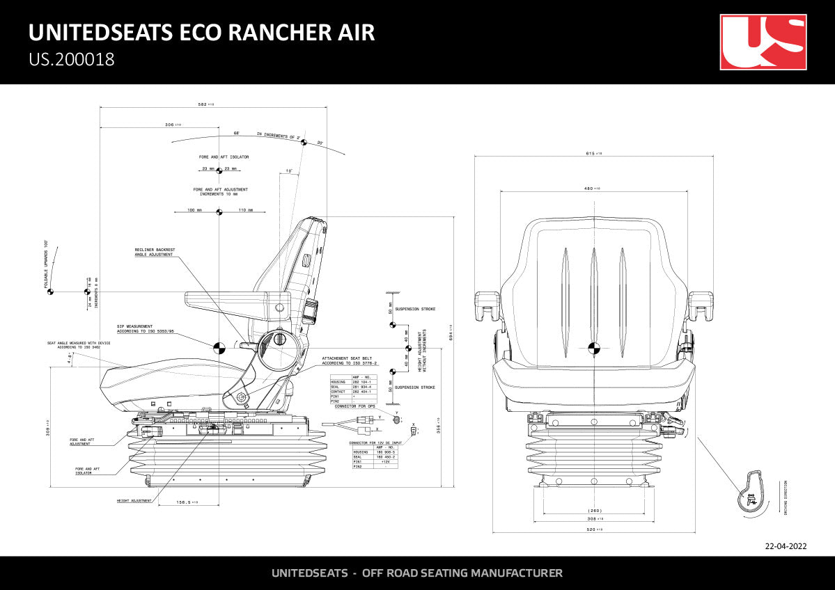 The Rancher Artisan by UnitedSeats is a high-quality air suspension seat built for mid-size tractors and compact construction vehicles. It features a robust 12V pneumatic suspension system, horizontal and fore/aft vibration isolation, and premium Elephant Black fabric for everyday professional use.