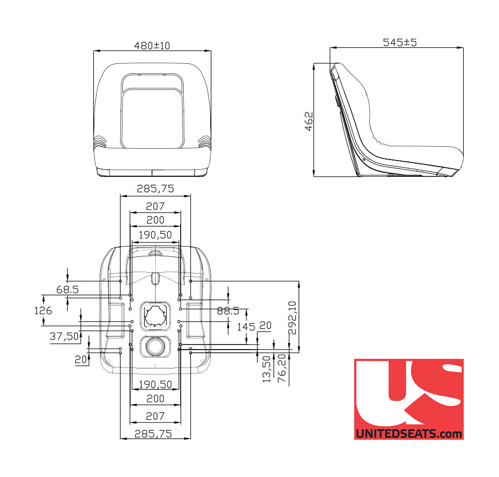 UnitedSeats MI600 Static Seat Pan – 480mm, Waterproof PVC