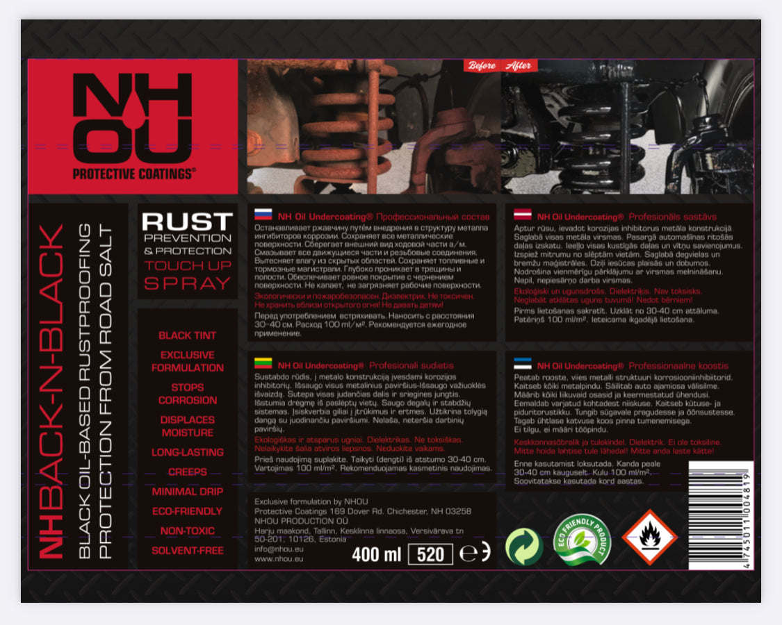 • 5 × 400ml NHOU® Black Oil Coating Spray