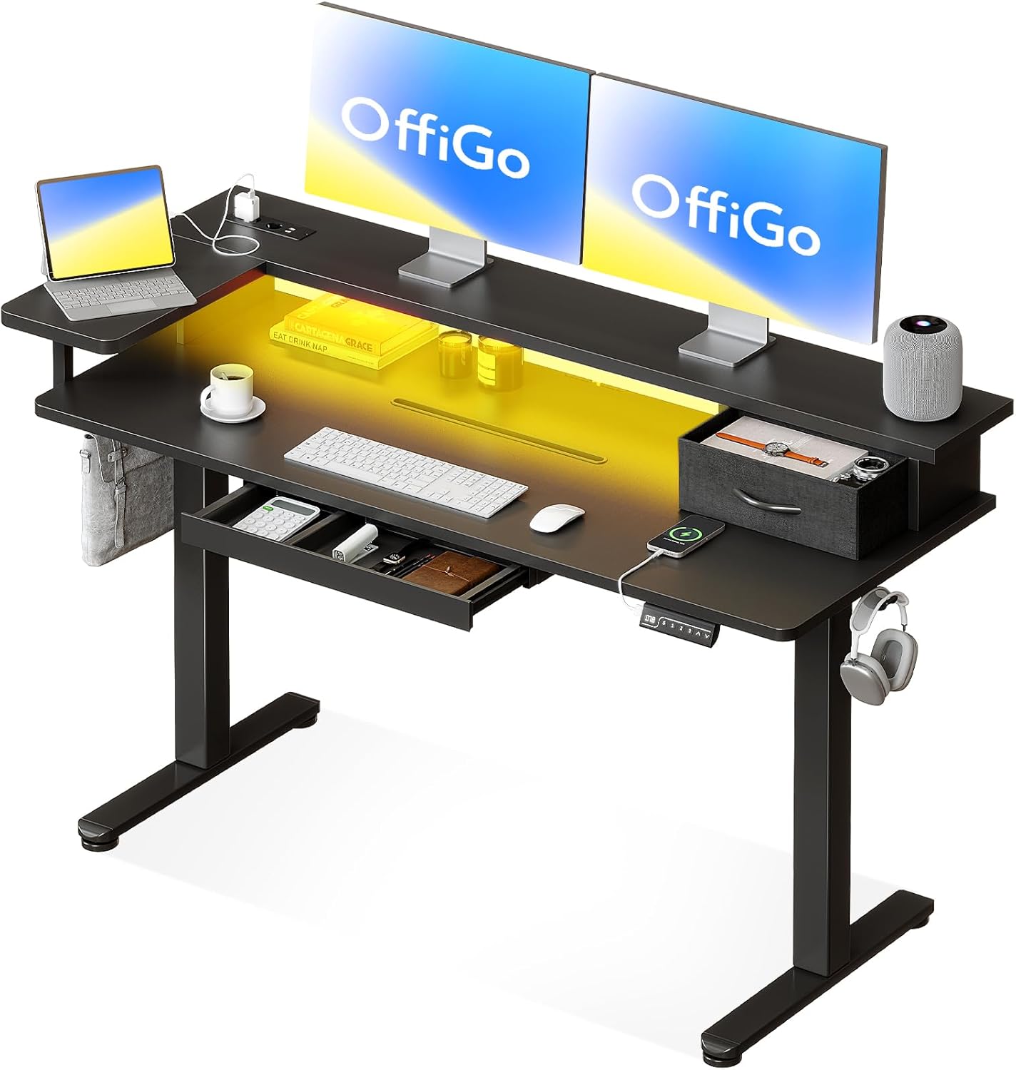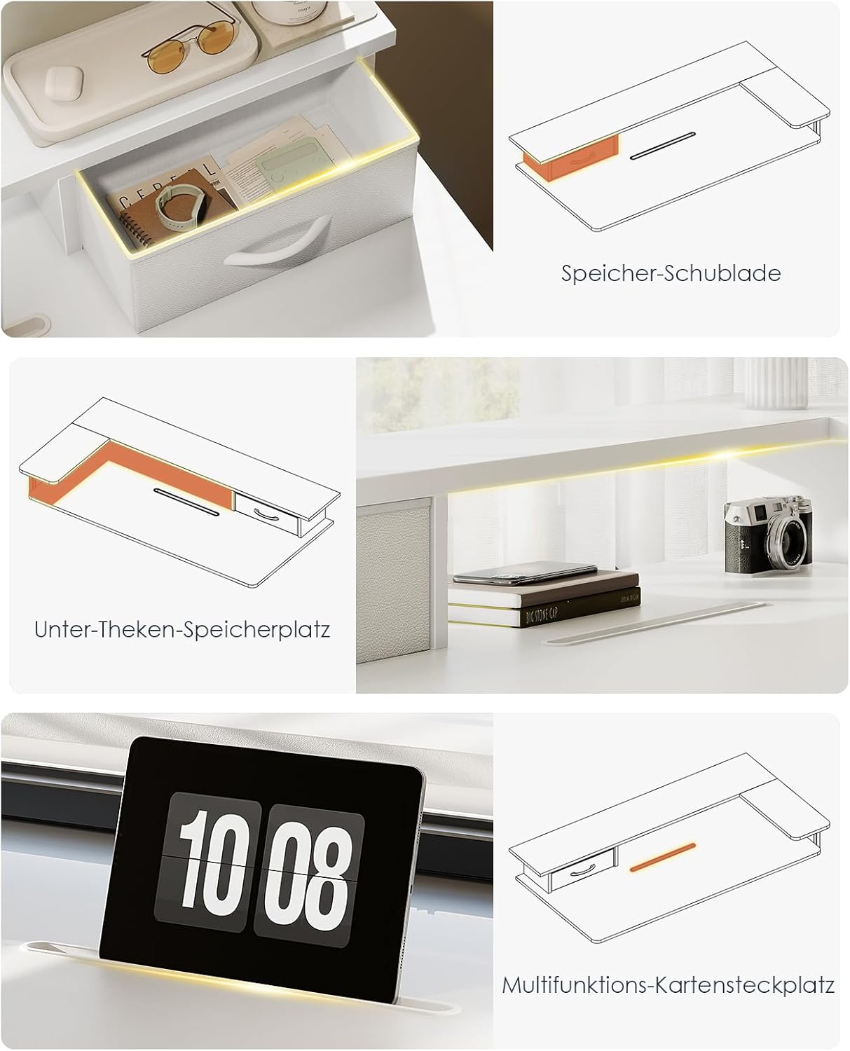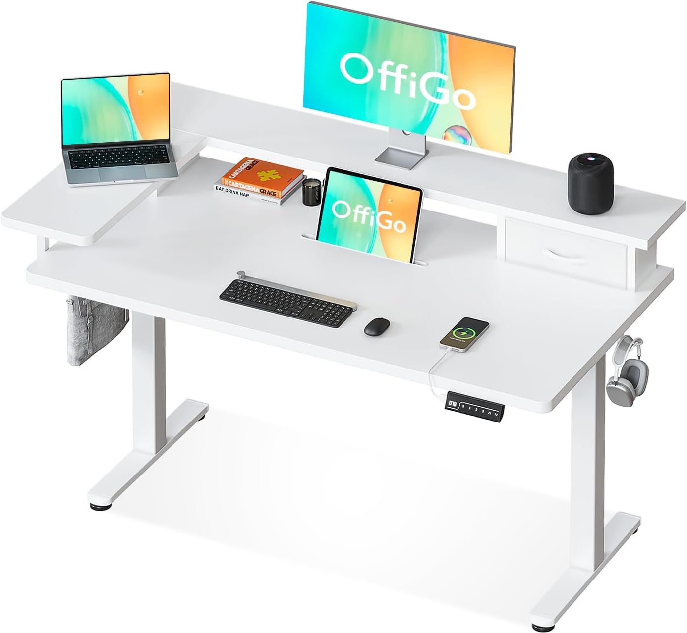 MULTI-TERED SPACE The double layer desk provides 55% more storage space, while the L-shaped bracket provides extra space for monitors and more storage space under the desk, effectively relieving neck tension.