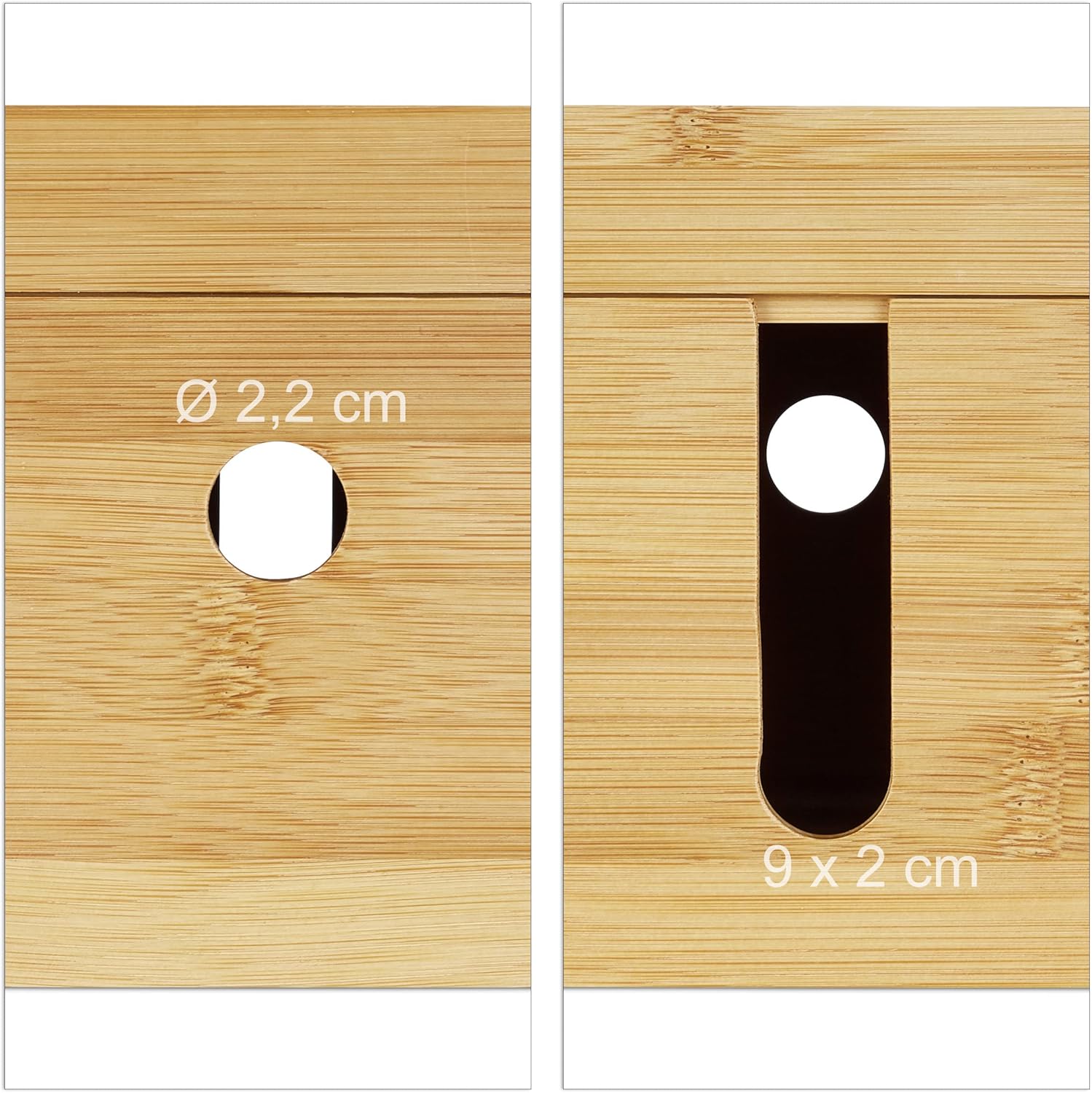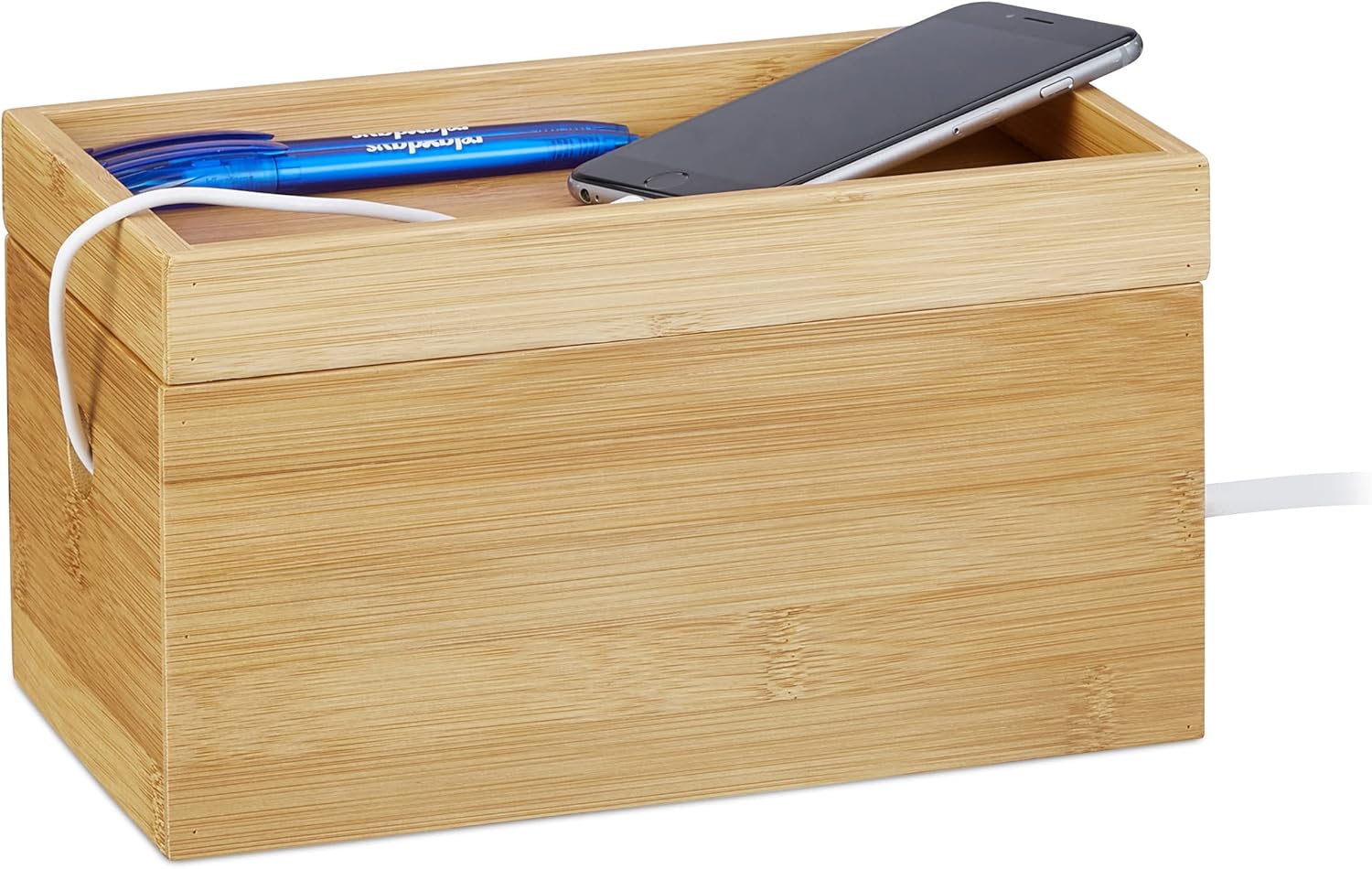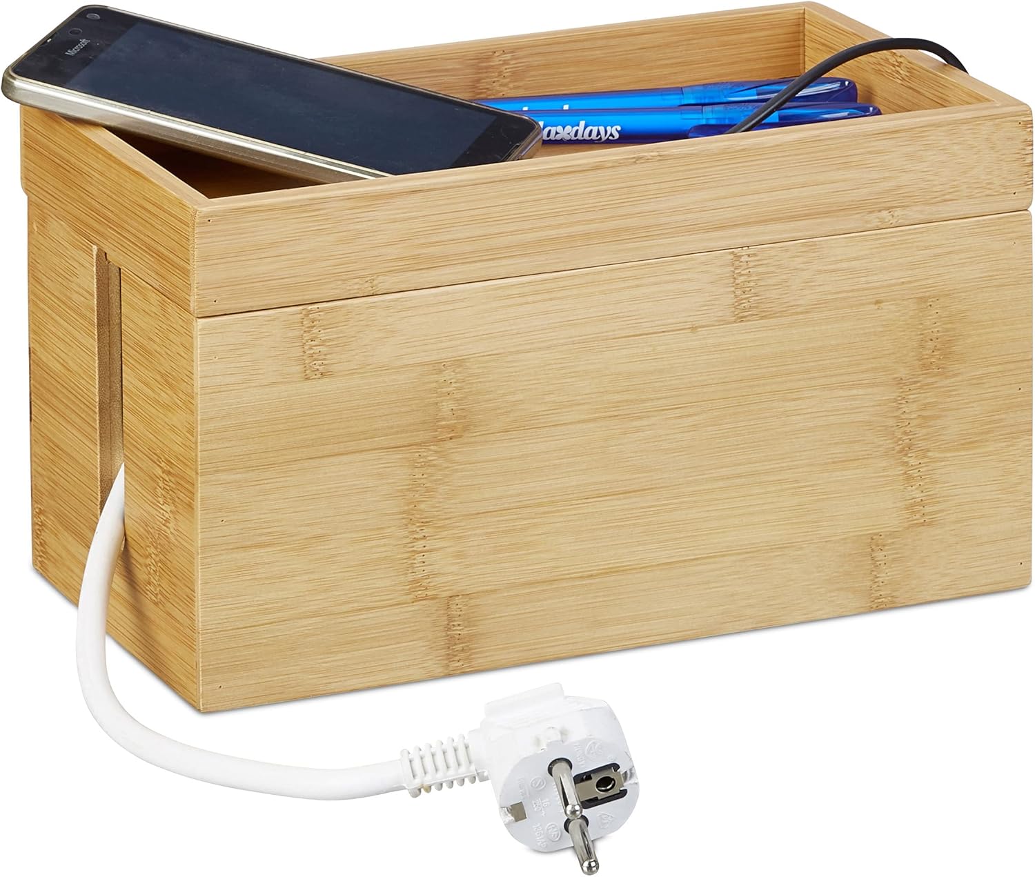 Relaxdays Bamboo Cable Box, Multi-Purpose, Compact, Universal, Practical Cable Management, 14 x 25.5 x 14 cm, (H x W x D), Natural