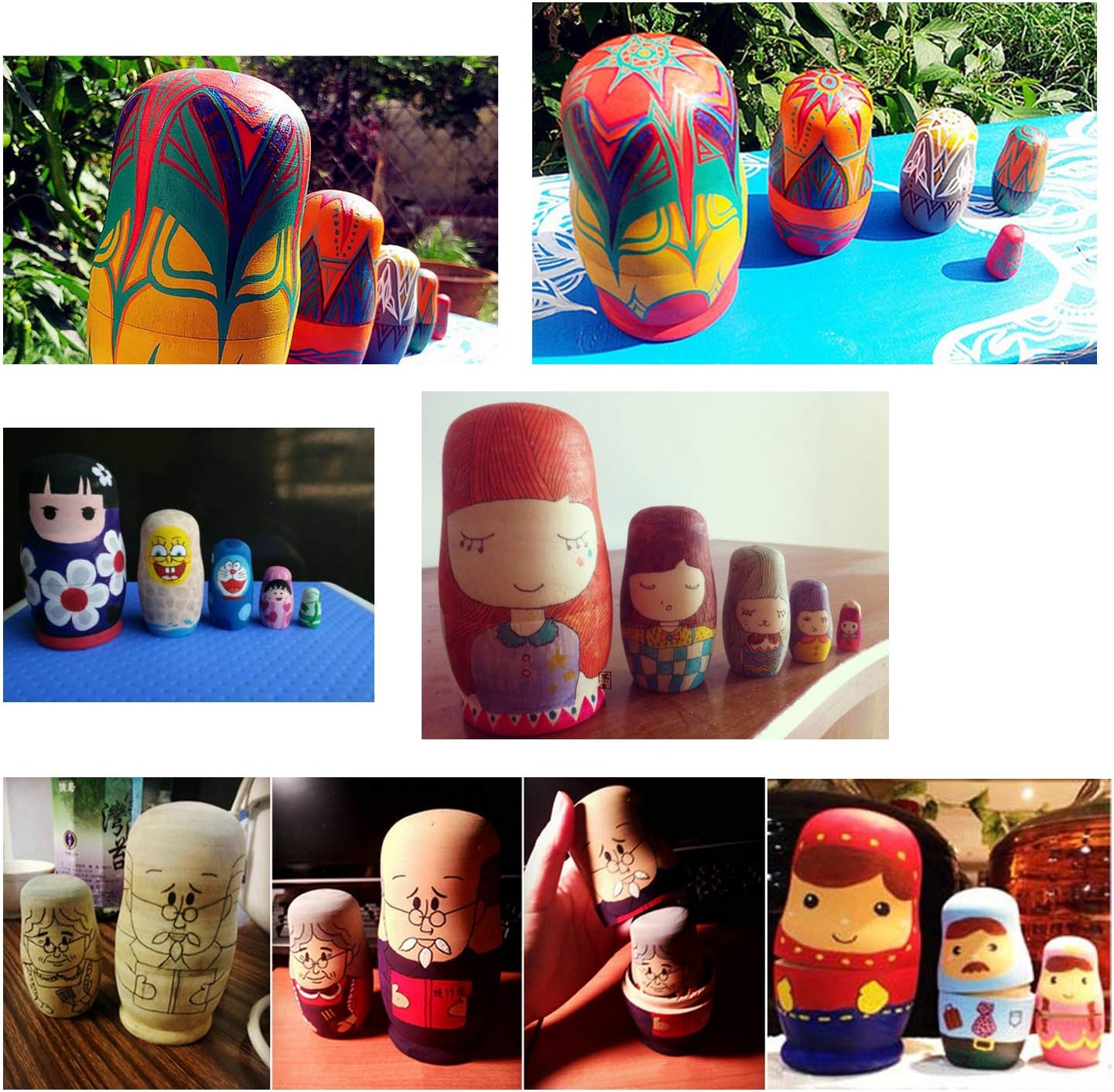 Unbemalte unbemalte Nistpuppen sind besonders für diejenigen gedacht, die ihre eigene Matrjoschka bemalen möchten. Das beste Geschenk für die kreative Entwicklung von Kindern.
