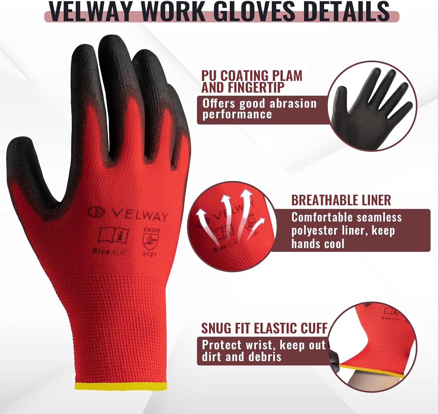 Velway PU-Coated Work Gloves — EN388 (1 Pair) Lightweight, breathable polyester gloves with PU-coated palms and fingertips for a firm,... Read more