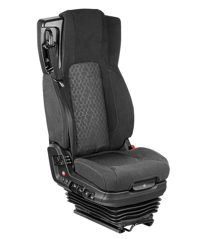 The Voyager C75 Premium seat by UnitedSeats is the ultimate in operator comfort and functionality. Featuring a fully automatic air suspension, integrated heating and cooling, dual pneumatic lumbar support, and a height-adjustable 3-point seatbelt, this seat meets the demands of high-performance agricultural and construction machines. Certified to meet top EU safety standards.
